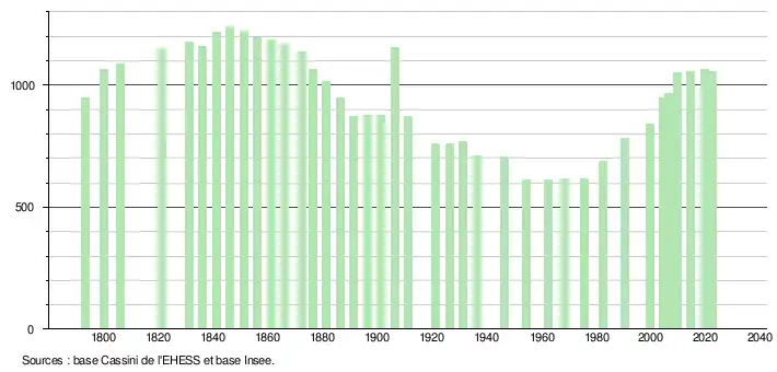- ↑ Fiches Insee - Populations de référence de la commune pour les années 2006, 2007, 2008, 2009, 2010, 2011, 2012, 2013, 2014, 2015, 2016, 2017, 2018, 2019, 2020, 2021 et 2022.