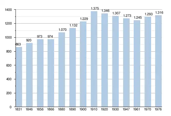 - Sources:INS, Rem:1831 jusqu'en 1970=recensements, 1976= nombre d'habitants au 31 décembre