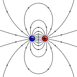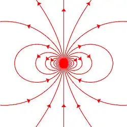 Le champ magnétique d'un dipôle idéal est représenté ci-contre.