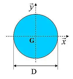 - Par un calcul similaire, ou plus simplement en raison de la symétrie de la section :