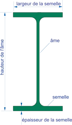 Les semelles sont les parties qui subissent la plus grande déformation. Ces parties sont donc plus larges, afin d'offrir une meilleure résistance à la déformation, tout en réduisant l'âme afin de gagner du poids. L'âme sert à écarter les semelles afin d'augmenter leur moment quadratique. Ainsi, à aire équivalente, le moment quadratique d'une section en I est beaucoup plus grand que celui d'une section carrée, d'autant plus que les épaisseurs — surtout celle de l'âme — sont faibles.