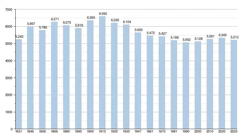 Les chiffres des années 1831 à 1970 tiennent compte des chiffres des anciennes communes fusionnées.