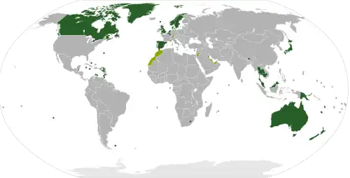 - l'Albanie de 1928 à 1939 avec le royaume d'Albanie ;