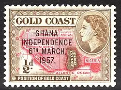 Le Ghana est le premier pays d'Afrique occidentale à obtenir son indépendance[1]. La loi sur l'indépendance du Ghana votée par le Parlement du Royaume-Uni en 1957 transforme la colonie britannique de la Côte-de-l'Or en État souverain et indépendant sous le nom de « dominion du Ghana », le , avec la reine Élisabeth II comme chef d'État[2]. La princesse Marina, duchesse de Kent, représente la reine aux célébrations de l'indépendance. Le , la princesse ouvre officiellement le premier Parlement du Ghana indépendant, au nom de la reine, en prononçant le discours du Trône[3].