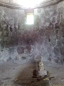| Khatchkar, devant l'entrée de l'église | Autel semi-circulaire | Coupole |