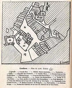 - ↑ Joseph Garin, Une ville morte : Conflans en Savoie. Guide historique et archéologique avec illustrations et plans précédé d'une Petite Histoire de l'Hôpital et de Conflans et d'un guide rapide de l'Hôpital-Albertville, vol. 7, Moûtiers, Recueil des mémoires et documents de l'Académie de la Val d'Isère, , 113 p. (lire en ligne), p. 110.