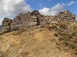 Au sommet de la colline du monastère se dressent les ruines d’un château fort médiéval (en grec, Κάστρο Οσίου Λουκά) construit sur les vestiges d'une forteresse antique. Les quatre murs sont conservés, faits d'une maçonnerie de moellons et de mortier de chaux.