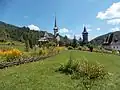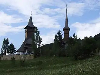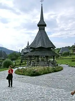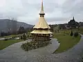 L'ensemble du monastère de Bârsana (1), jusqu'à récemment la plus haute église en bois du monde.