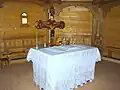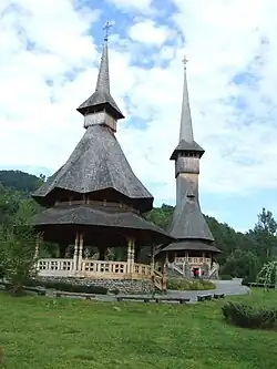 L'ensemble monastique a été construit en bois, selon la tradition locale, sous la direction de l'architecte Cordoș Dorel. Il est composé d'un portail de bois typique de la région, d'un clocher, de l'église (d'une hauteur de 57 m), d'un autel d'été, des cellules des moines, de la chapelle (construite sur plusieurs niveaux), de la maison des contremaîtres et de la maison des artistes (atelier). Un musée a été récemment construit à l'intérieur du monastère.