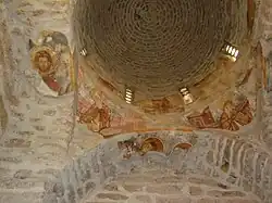Des fresques originelles ne subsistent que quelques fragments, représentant la vie de Saint Démétrios de Salonique, ainsi que quelques traces de peintures consacrées au fondateur du monastère (dans la partie nord).