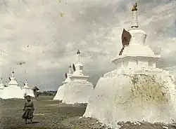 - ↑ Ce point demeure incertain : certains avancent que la statue aurait été construite pour célébrer la proclamation de l'indépendance de la Mongolie à la chute de la dynastie Qing.