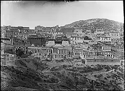 Le monastère de Ganden est niché au creux d'un cirque en amphithéâtre[3].