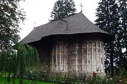 L'église dédiée à l'Assomption est la première église à avoir été peinte à l'extérieur. Les fresques dont la couleur dominante est le rouge sont l'œuvre du peintre Toma de Suceava.