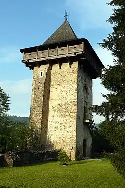 Le fondateur, Toader Bubuiog (mort en ) et son épouse sont inhumés dans la chambre funéraire et un tableau votif l'y représente ainsi que le prince Pierre IV qui a patronné le programme de restauration des monastères de la principauté de Moldavie.