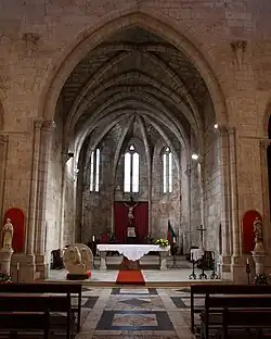 Dans la chapelle absidale côté Évangile se trouve le tombeau de D. Dinis, de la première moitié du XIVe siècle, important monument de tombes médiévales portugaises (gravement endommagées par le tremblement de terre de 1755 et les invasions françaises ; celle qui existe encore, reconstruite au XIXe siècle, ne respecte pas le projet original). Dans l'autre chapelle, côté Épître, se trouve le tombeau (vide) de D. Maria Afonso, fille du roi Denis Ier. Il faut également remarquer l'ancienne cuisine et le réfectoire, ainsi que les cloîtres originaux du XVIe siècle : le "Claustro da Moura" à deux étages et le "Claustro Novo", décoré de tuiles du XVIIe siècle.
