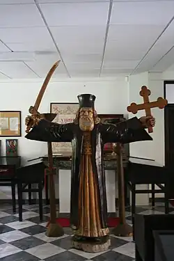 Détruit par les Turcs, le monastère de Rača fut renconstruit en 1795 par Hadži Melentije Stefanović (1766-1824), abbé du monastère qui fut aussi un des chefs de la première révolte serbe contre les Turcs (1804-1813) et qui participa à la libération de la ville d'Užice. La bannière de Hadži Milentije, qui date de 1807, est encore aujourd'hui conservée au monastère.