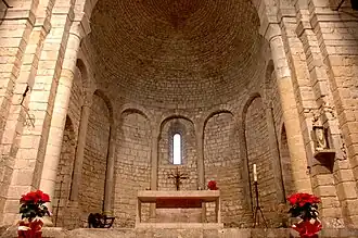 L'église présente une belle abside voûtée en cul de four, ornée de sept arcades dont une seule est percée d'une fenêtre. Chacune des arcades extérieures est percée d'une niche aveugle.
