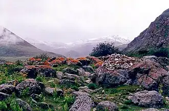- Camp nomade au-dessus du monastère de Tsourphou, 1993. La fumée est celle d'un feu de genévrier allumé pour une cérémonie.