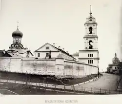 En 1835-1836, l'on construit au-dessus de la Porte Sainte un clocher avec une chapelle dédiée au martyr saint Eugène de Chersonèse, selon les plans de Nikolaï Kozlovski. Au début du XXe siècle, l'on construit un grand bâtiment monastique de deux étages qui accueille une école paroissiale. L'église Saint-Jean-Bouche-d'Or est reconstruite en 1903-1904 par l'architecte Piotr Vinogradov avec une chapelle-réfectoire. Ce même architecte construit en 1904-1906 l'église de l'Icône-de-Kazan-de-la-Mère-de-Dieu avec une nouvelle chapelle-réfectoire. Le monastère accueille à cette époque un orphelinat de filles et une école paroissiale.