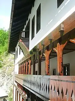 L'architecture du monastère diffère en partie de celle des autres monastères de la région. Son église, qui se rapproche du style serbo-byzantin, s'inscrit néanmoins dans un plan carré ; la nef est prolongée par une large abside. La nef elle-même est subdivisée en trois parties à l'aide de quatre piliers, deux au sud et deux au nord : la large partie centrale est dotée d'une voûte en berceau soutenue par les piliers, tandis que celles des ailes latérales sont dotées de voûtes transversales en demi-cercle[réf. nécessaire].