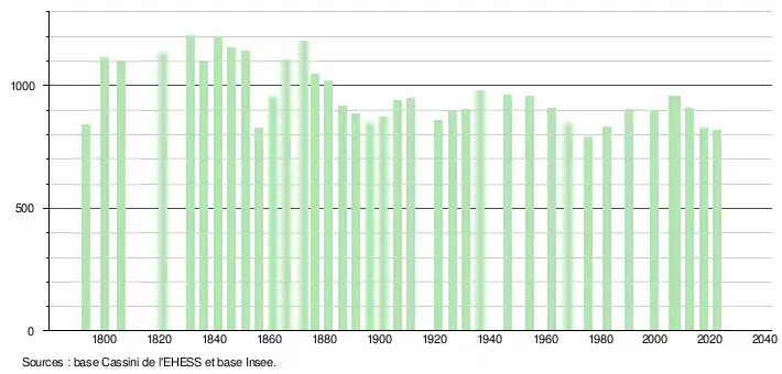 - ↑ Fiches Insee - Populations de référence de la commune pour les années 2006, 2007, 2008, 2009, 2010, 2011, 2012, 2013, 2014, 2015, 2016, 2017, 2018, 2019, 2020, 2021 et 2022.