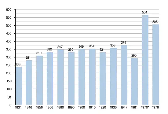 - Source: DGS, 1831 à 1970=recensements population, 1976= habitants au 31 décembre