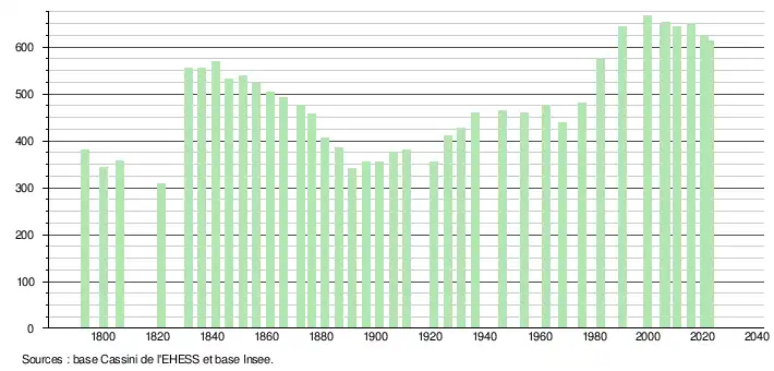 (Sources : Ldh/EHESS/Cassini jusqu'en 1999[19] puis Insee à partir de 2006[41].)