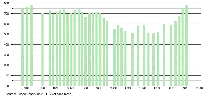776 hab. (2022 en évolution de +3,6 % par rapport à 2016)