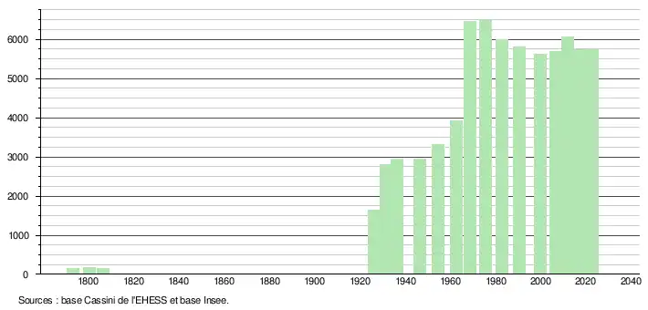 - ↑ Population municipale de référence en vigueur au 1er janvier 2025, millésimée 2022, définie dans les limites territoriales en vigueur au 1er janvier 2024, date de référence statistique : 1er janvier 2022.