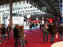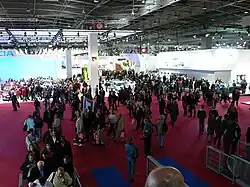 Le parc des expositions de Paris, Porte de Versailles, a ainsi accueilli durant , le Mondial de l'automobile. D'une superficie de 220 000 m2, le parc est divisé en 8 pavillons d'exposition où se répartissent les différentes marques automobiles[40]. Le hall 1 est le plus vaste des halls, et accueille de ce fait un grand nombre de marques. 38 marques y sont représentées dont Peugeot, Renault, Citroën, Porsche, BMW, Mercedes-Benz, etc. Avec les halls 3, 4 et 5, ils représentent à eux quatre la majorité des expositions de voitures particulières, de leurs équipements et de concept car[41].