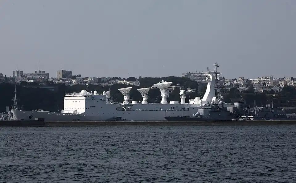 - ↑ Léo Durin, « À quoi sert le « Yuan Wang 5 », navire « espion » chinois amarré au Sri Lanka ? », La Croix, (lire en ligne) :