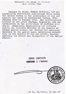 - ↑ BELGA, « Décès de Monique de Bissy, résistante belge », sur La Libre.be (consulté le )