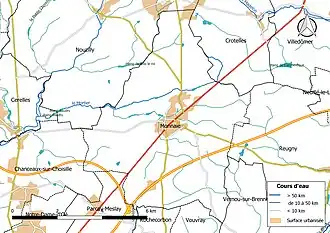 - ↑ « Carte hydrologique de Monnaie », sur geoportail.gouv.fr (consulté le ).