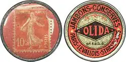 Utilisés dans de nombreux pays, les timbres-monnaie ont connu leur apogée en France dans les années 1920. Lorsque la firme de Robert Binds-Hedler, spécialisée dans le fer-blanc à la Plaine Saint-Denis, inventa le F.Y.P. « Fallait Y Penser » (nom donné à cette invention dans son brevet de 1920, voir Timbre-monnaie), de nombreuses sociétés émirent des timbres-monnaie publicitaires. On peut en dénombrer, à ce jour, au moins 600 différents, avec deux grands types de fabrication : les timbres-monnaie avec une publicité polychrome et les estampés. Les valeurs faciales sont généralement 5 centimes, 10 centimes, 15 centimes, 25 centimes, avec de grandes variétés de couleur.