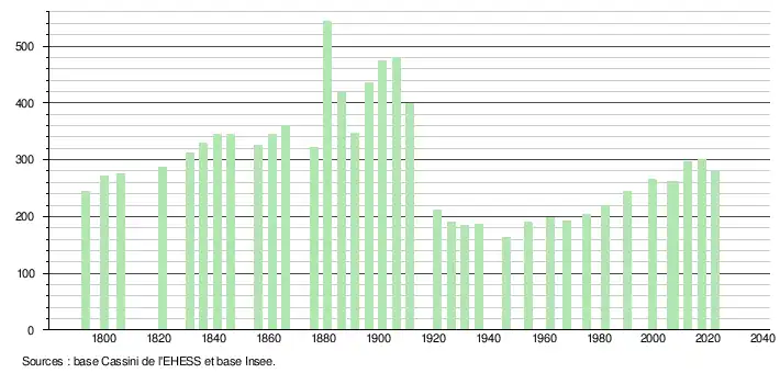 - ↑ Fiches Insee - Populations de référence de la commune pour les années 2006, 2007, 2008, 2009, 2010, 2011, 2012, 2013, 2014, 2015, 2016, 2017, 2018, 2019, 2020, 2021 et 2022.