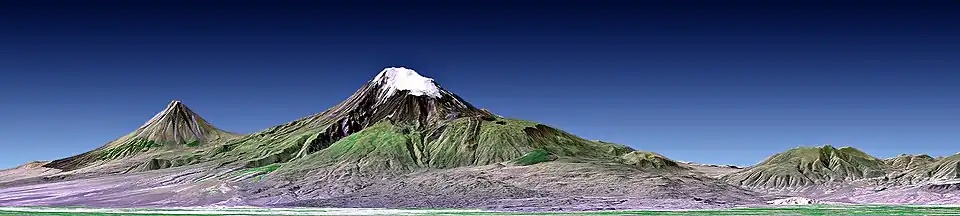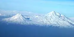 Le mont Ararat (en arménien Արարատ), Ağrı Dağı en turc, Çiyayê Agirî ou Shaxi en kurde, Kuh-e-Nuh (کوه نوح, « montagne de Noé ») en persan, ou encore Masis (Մասիս chez les Arméniens, Μασίς chez les Grecs pontiques et מעזיז (Maziz)[4] chez les Romaniotes) est avec 5 137 mètres d'altitude le sommet le plus élevé de Turquie. Situé sur le haut-plateau arménien, dans l'Est de la Turquie, il est à une trentaine de kilomètres des frontières avec l'Arménie et l'Iran.