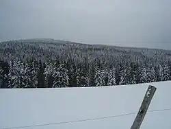 Forêt d'Auvers et le mont Mouchet à droite. | ||||