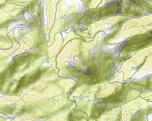 Le mont San Vicino est une montagne culminant à 1 479 m dans l'Apennin ombro-marchesan sur la frontière entre les provinces d'Ancône et de Macerata[2].