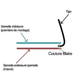 La couture Blake consiste à coudre la semelle, de l'intérieur vers l'extérieur, pour solidariser les semelles intérieure et extérieure. Blake est le nom de l'inventeur qui réalisa à la fin du XIXe siècle, une machine permettant de mécaniser cette couture de part en part.