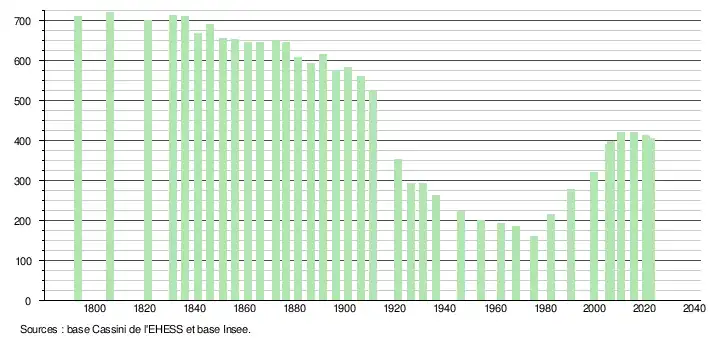 - ↑ Fiches Insee - Populations de référence de la commune pour les années 2006, 2007, 2008, 2009, 2010, 2011, 2012, 2013, 2014, 2015, 2016, 2017, 2018, 2019, 2020, 2021 et 2022.