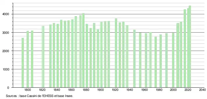 - ↑ Fiches Insee - Populations de référence de la commune pour les années 2006, 2007, 2008, 2009, 2010, 2011, 2012, 2013, 2014, 2015, 2016, 2017, 2018, 2019, 2020, 2021 et 2022.