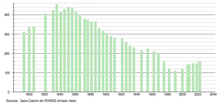 - ↑ Population municipale de référence en vigueur au 1er janvier 2025, millésimée 2022, définie dans les limites territoriales en vigueur au 1er janvier 2024, date de référence statistique : 1er janvier 2022.