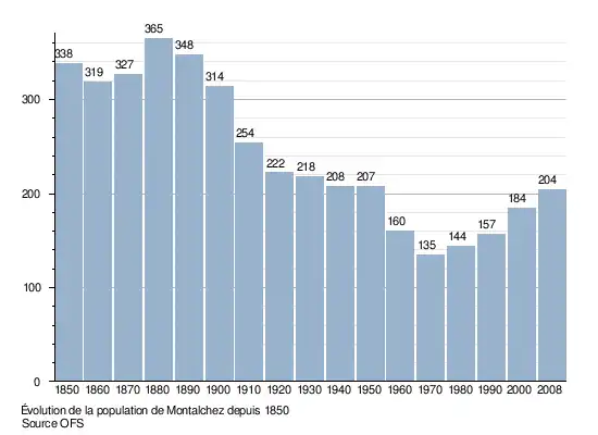 Selon l'Office fédéral de la statistique, Montalchez compte 240 habitants fin 2023[2]. Sa densité de population atteint 37 hab./km2.