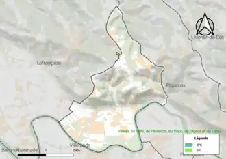 L’inventaire des zones naturelles d'intérêt écologique, faunistique et floristique (ZNIEFF) a pour objectif de réaliser une couverture des zones les plus intéressantes sur le plan écologique, essentiellement dans la perspective d’améliorer la connaissance du patrimoine naturel national et de fournir aux différents décideurs un outil d’aide à la prise en compte de l’environnement dans l’aménagement du territoire. Une ZNIEFF de type 1[Note 3] est recensée sur la commune[18] : la « rivière Aveyron » (3 500 ha), couvrant 63 communes dont 38 dans l'Aveyron, cinq dans le Tarn et 20 dans le Tarn-et-Garonne[19] et une ZNIEFF de type 2[Note 4],[18] : la « vallée de l' Aveyron » (14 644 ha), couvrant 68 communes dont 41 dans l'Aveyron, cinq dans le Tarn et 22 dans le Tarn-et-Garonne[20].