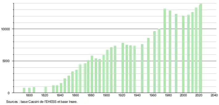 - ↑ Fiches Insee - Populations de référence de la commune pour les années 2006, 2007, 2008, 2009, 2010, 2011, 2012, 2013, 2014, 2015, 2016, 2017, 2018, 2019, 2020, 2021 et 2022.