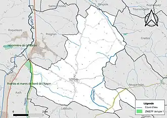 L’inventaire des zones naturelles d'intérêt écologique, faunistique et floristique (ZNIEFF) a pour objectif de réaliser une couverture des zones les plus intéressantes sur le plan écologique, essentiellement dans la perspective d’améliorer la connaissance du patrimoine naturel national et de fournir aux différents décideurs un outil d’aide à la prise en compte de l’environnement dans l’aménagement du territoire. Une ZNIEFF de type 1[Note 1] est recensée sur la commune[13] : les « prairies et mares de bord de l'Arçon » (60 ha), couvrant 4 communes du département[14].
