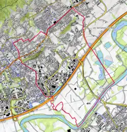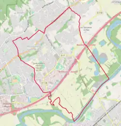 L'occupation des sols de la commune, telle qu'elle ressort de la base de données européenne d’occupation biophysique des sols Corine Land Cover (CLC), est marquée par l'importance des territoires artificialisés (51,2 % en 2018), en augmentation par rapport à 1990 (29,7 %). La répartition détaillée en 2018 est la suivante : zones urbanisées (29,5 %), terres arables (25,2 %), zones industrielles ou commerciales et réseaux de communication (18,2 %), zones agricoles hétérogènes (17,8 %), forêts (4,5 %), mines, décharges et chantiers (3,5 %), eaux continentales[Note 4] (1,2 %)[12]. L'évolution de l’occupation des sols de la commune et de ses infrastructures peut être observée sur les différentes représentations cartographiques du territoire : la carte de Cassini (XVIIIe siècle), la carte d'état-major (1820-1866) et les cartes ou photos aériennes de l'IGN pour la période actuelle (1950 à aujourd'hui)[Carte 1].