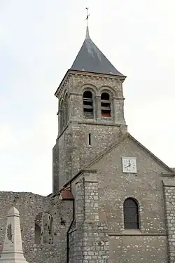 : implosion du clocher par le dynamitage du Génie militaire, qui provoque des dégâts importants en tombant sur l'église et des habitations. Ce clocher est reconstruit en 1912 par Jean Richepin de l'Académie française, qui fut maire de la commune et résida au château des Trois Fontaines.