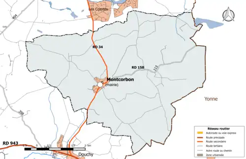 La commune est traversée par deux routes départementales à faible trafic[Note 1] : la RD 34 (1 240 véhicules/jour), qui relie Douchy au Bignon-Mirabeau[11] et la RD 158 (113 véhicules/jour), qui relie la commune à la RD 180 dans l'Yonne[11].