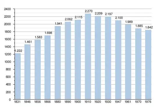 - Sources : INS, Rem. : 1831 jusqu'en 1970 = recensements, 1976= nombre d'habitants au 31 décembre[2].